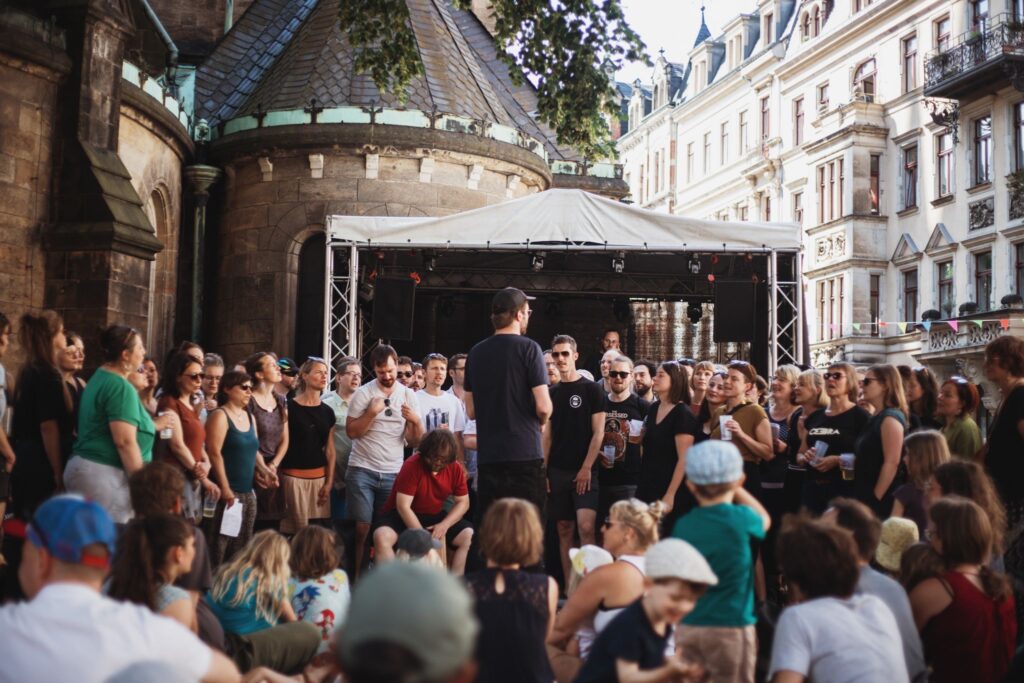 Der Dresdner Kneipenchor ist ein Chor aus der Kneipe für die Kneipe. In die Dresdner Kneipen passt der im Oktober 2012 gegründete Chor schon lange nicht mehr, aber auf die Bühnen der Stadt. Unter der Leitung von Torsten A. wird dir ein Potpourri des guten Geschmacks präsentiert. BASS auf, wenn die ALTen die SOPRANösen weg TENOeRen. Bier öffnen! Hinsetzen! Mitschunkeln!