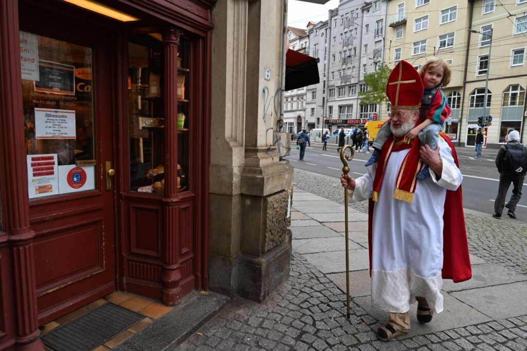 Nikolaus kennt jeder. Jedenfalls haben wir alle eher positive, oft geheimnisvolle Erfahrungen damit, auch Franziska Leonhardi. Aber sie hat als Künstlerin der Versuchung widerstanden, dem Nikolaus durch Wissen (Geburtsort, Namen der Eltern, beruflicher Werdegang…, kann man ja alles im Internet nachlesen) auf die Spur zu kommen zu wollen. Denn Nikolaus lebt bis heute von dem, was über ihn erzählt wird, von seinen Legenden. Die schönste, so findet Franziska ist die: