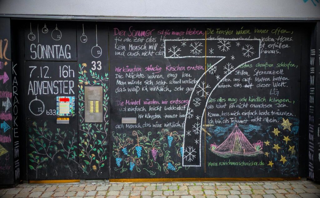 Die b33 liest euch eine selbst geschriebene Geschichte auch für Kinder vor, präsentiert Weihnachten auf Ska, eine Weihnachtslieder-Karaoke und Feuer mit warmen Getränken mit und ohne Alkohol.